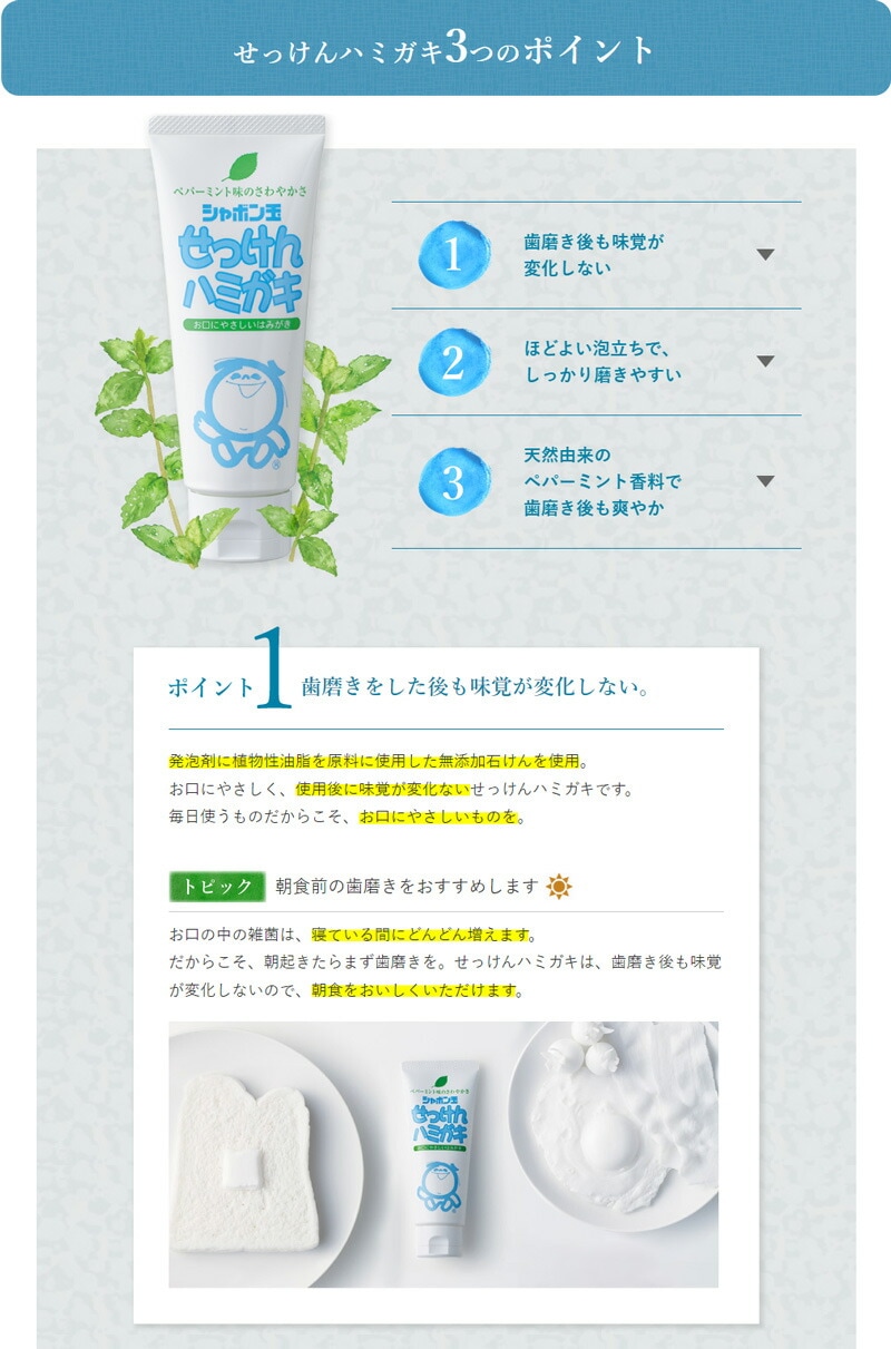 シャボン玉石けん 歯磨き粉 せっけんハミガキ 140g 【シャボン玉石けん】 正規品 無添加 ナチュラル 合成界面活性剤・サッカリン・防腐剤・フッ素・マイクロプラスチックビーズ不使用 トゥースペースト ペパーミント